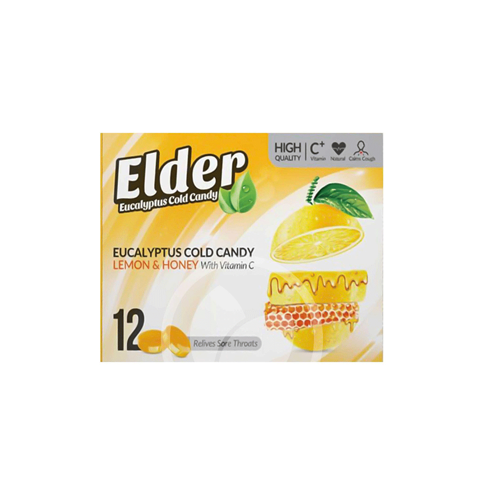 ویژگی های آبنبات سرد اکالیپتوس با طعم لیمو عسل Eucalyptus Cold Candy Lemon-honey +C از برند Elder تعداد 12 عدد: