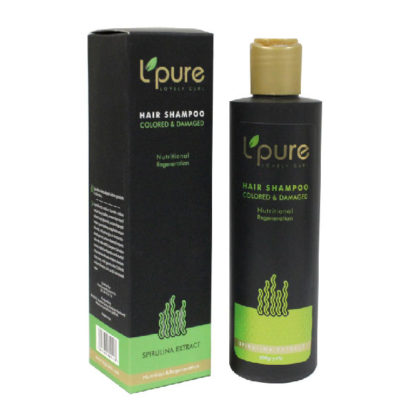 ویژگی های شامپو حجم دهنده موهای چرب حاوی جلبک اسپیرولینا و آلوئه ورا Shampoo Volumizing For Oily Hair برند Lpure حجم 230 میل: