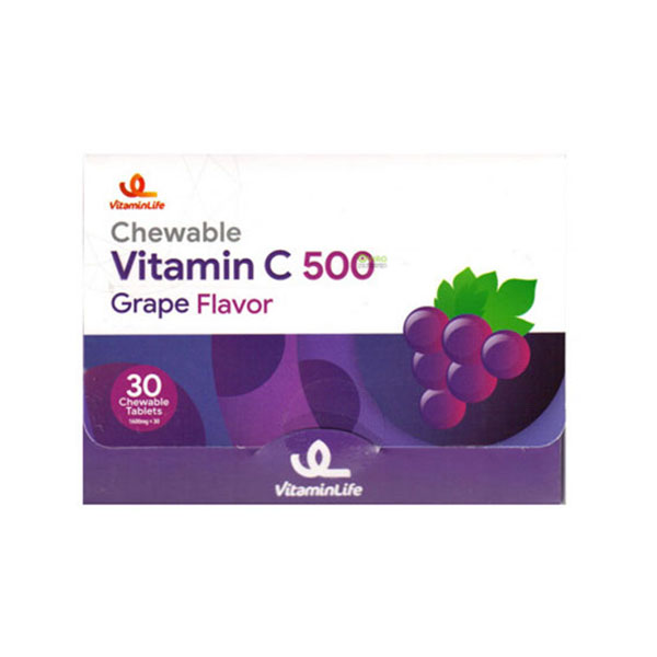 ویژگی های قرص جویدنی ویتامین ث ویتامین لایف 500 میلی گرم C Vit Grape Tablet VitaminLife بسته 30 عددی: