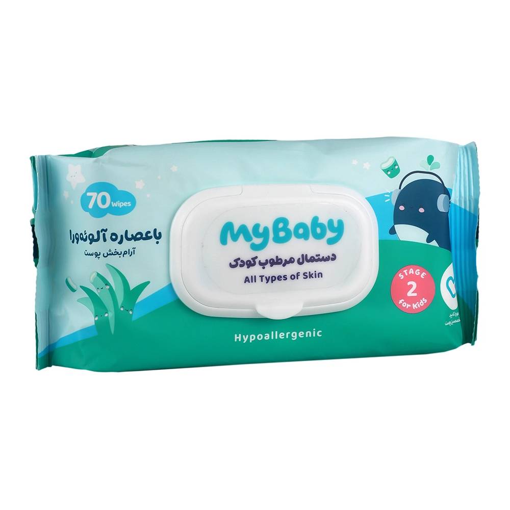 دستمال مرطوب کودک حاوی آلوئه ورا مای بیبی 70 عددی
