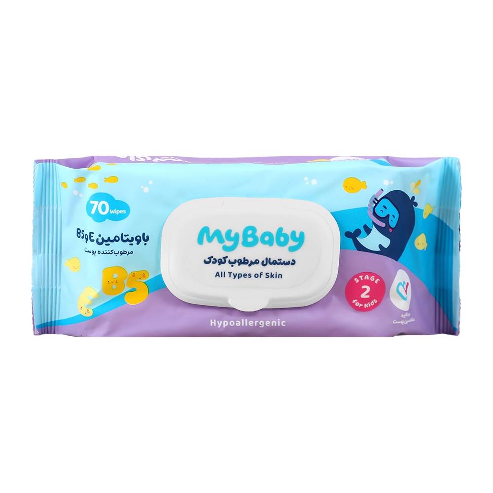دستمال مرطوب کودک حاوی ویتامین E و B5 مای بیبی 70 عددی :