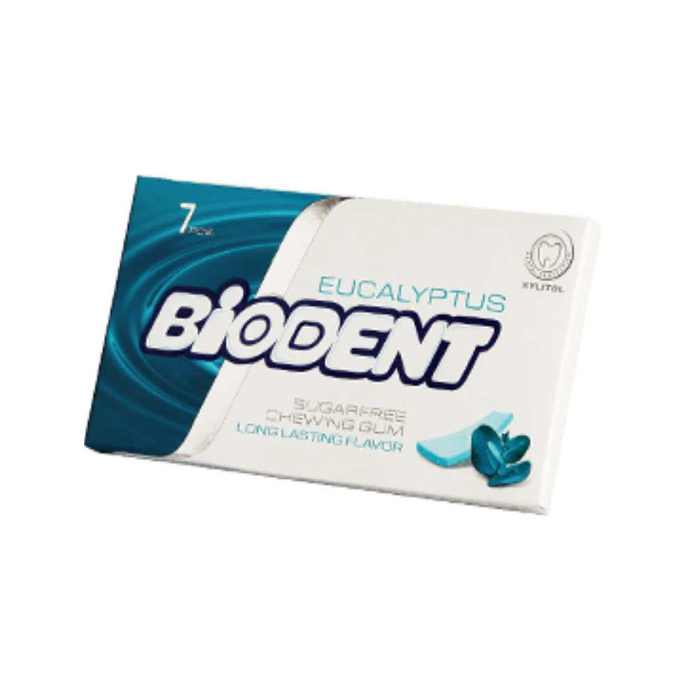 ویژگی های آدامس بدون شکر با طعم اکالیپتوس Sugar Free Chewing Gum Eucalyptus برند Biodent در بسته بندی های 7 عددی: