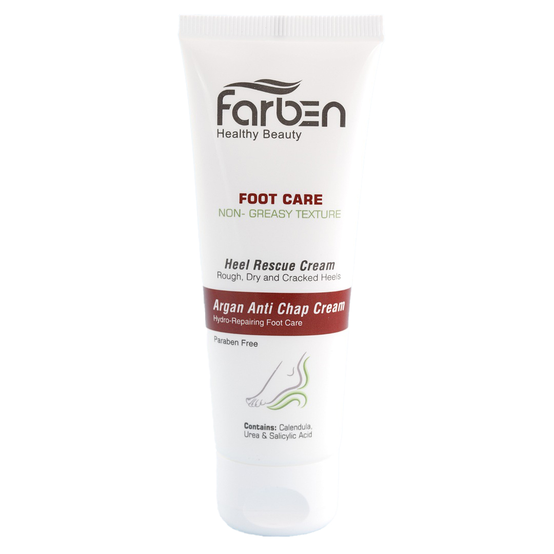 ویژگی های کرم ترک پا حاوی روغن آرگان Foot Care Heel Rescue Cream از برند Farben در حجم 75ml: