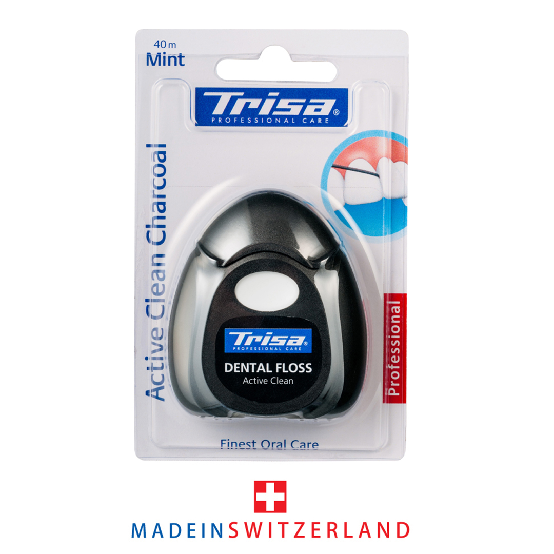 ویژگی های نخ دندان اکتیو کلین کار کول Active Clean Charcoal Dental Floss برند Trisa طول 40 متر: