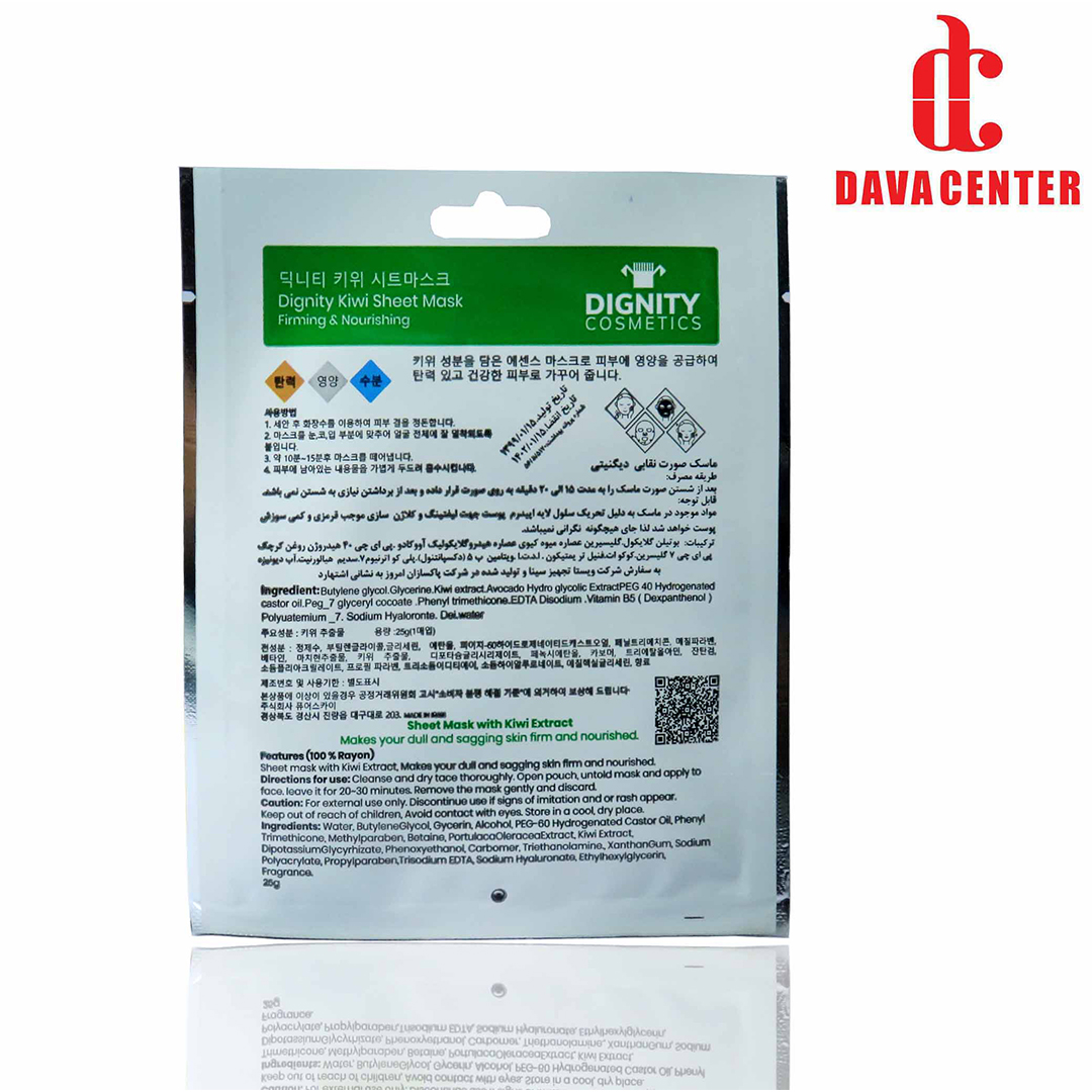 ویژگی های ماسک صورت ورقه ای پوست های لک دار کیوی Sheet Mask Kiwi Firming & Nourishing از برند Dignity :