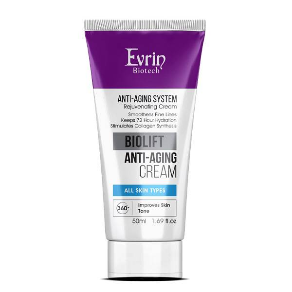 ویژگی های کرم آبرسان و جوانساز پوست های چروک Biolift Anti-Ageing Cream برند Evrin Biotech حجم 50 میل:
