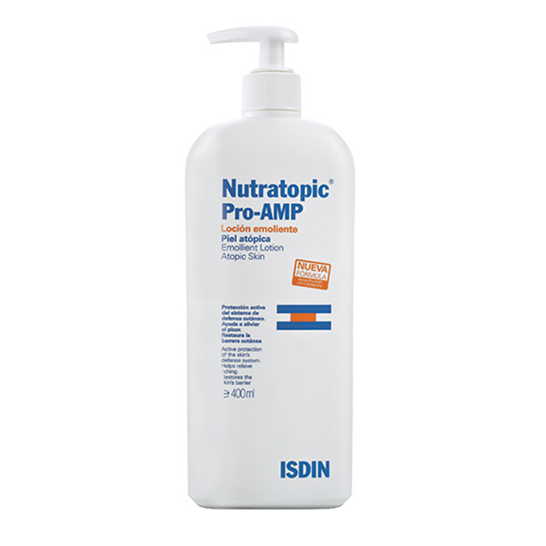 ویژگیهای لوسیون نرم کننده پوست Nutratopic Pro Amp Emollient برند Isdin در حجم 400 میلی لیتر: