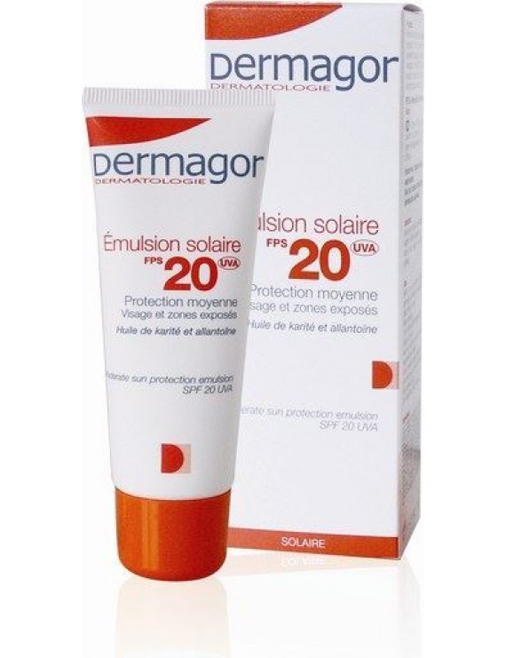 ویژگی های امولسیون ضد آفتاب Emulsion Solaire از برند Dermagor در حجم 40 میلی لیتر با SPF20 :