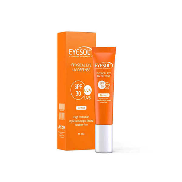 ویژگی های کرم ضد آفتاب دور چشم رنگی آیسول Eyesol Physical Eye UV Defense SPF30 Tinted حجم 15 میلی لیتر: