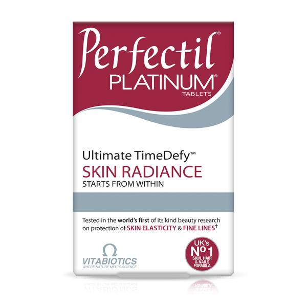 ویژگی قرص بازسازی پوست و تقویت کلاژن Perfectil Platinum Tablet از برند Vitabiotics در بسته بندی 60 عددی: