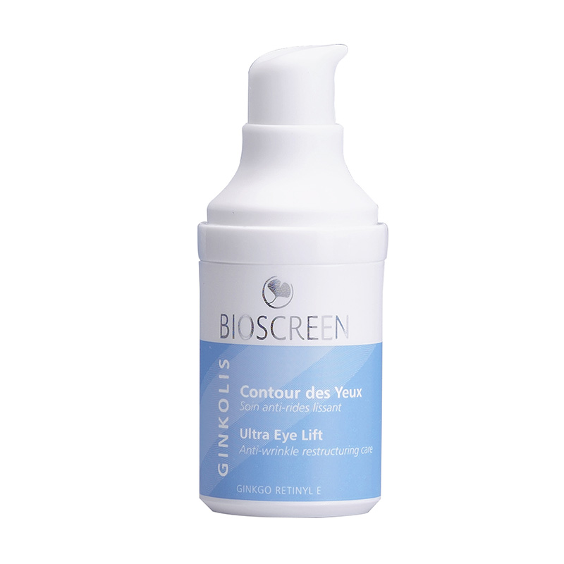 ویژگیهای کرم لیفت ضد چروک دور چشم Ginkolis Ultra Eye Lift Cream برند Bioscreen در حجم 15 میلی لیتر: