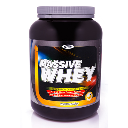ویژگیهای پودر کربو پروتئین مسیو وی Massive Whey Banan Powder برند Pnc در حجم 1000 گرمی :