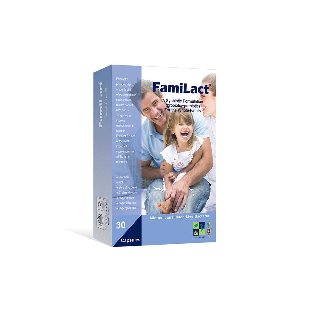 ویژگی های کپسول پروبیوتیک خانواده Familact Capsule Pro for all family از برند Zisttakhmir در بسته بندی 30 عددی: