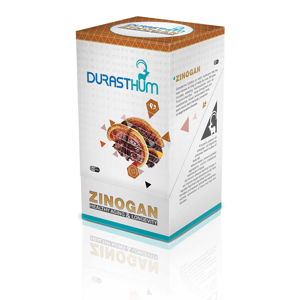 ویژگیهای کپسول پودر قارچ Zinogan Capsules برند DurastHum در بسته های 60 عددی: